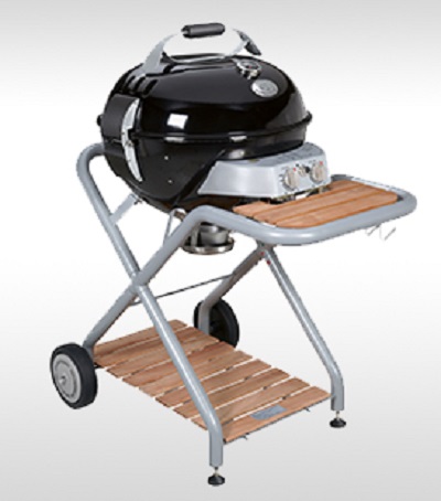 Kugelgrill: Bei einem Kugelgrill dient die obere Hälfte als Deckel, die untere als Behältnis für die Kohle. Durch einen kleinen Kamin wird von unten Luft zugeführt. Der Vorteil eines Kugelgrills ist das indirekte Grillen. Durch Einsatz des Deckels wird ähnlich wie im Backofen zusätzlich gegart. Das Grillgut muss nicht direkt auf der Kohle liegen, sondern kann daneben platziert werden. Diese Methode ist schonend und gesund, weil kein Fett in die Glut tropfen kann. Selbst große Fleischstücke können auf diese Weise gegart werden.