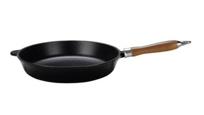 Eine Pfanne aus geschmiedetem Eisen ist in jedem Haushalt unerlässlich. Sie kann auf allen Herdarten verwendet werden, jedoch sollte die Herdplatte der Größe der Pfanne entsprechen, da sich die Pfanne sonst verziehen kann. Die Eisenpfanne eignet sich besonders für das scharfe Anbraten von Steaks und zum langsamen Schmoren sowie für den Backofen. Vor der Erstverwendung sollten Sie die Pfanne einbrennen, damit sie eine natürliche Antihaftbeschichtung bekommt.